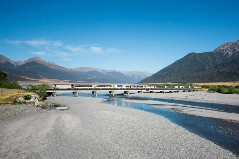 Board the iconic TranzAlpine train to Greymouth, a journey through the Southern Alps and lush native forest, making it one of the most spectacular rail rides in the world.